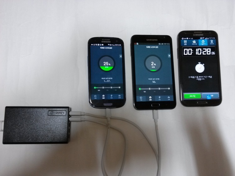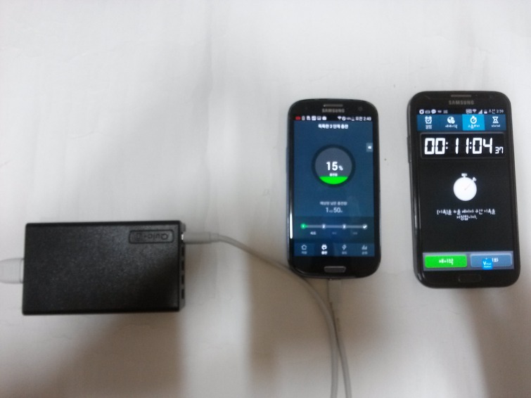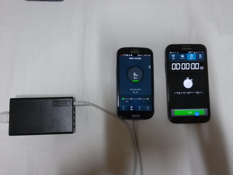 두번째로 갤럭시 노트1 을 2번째 포트에 연결하고 S3 그대로 첫번째 포트에 연결을 해서 충전 시간을 측정했습니다.