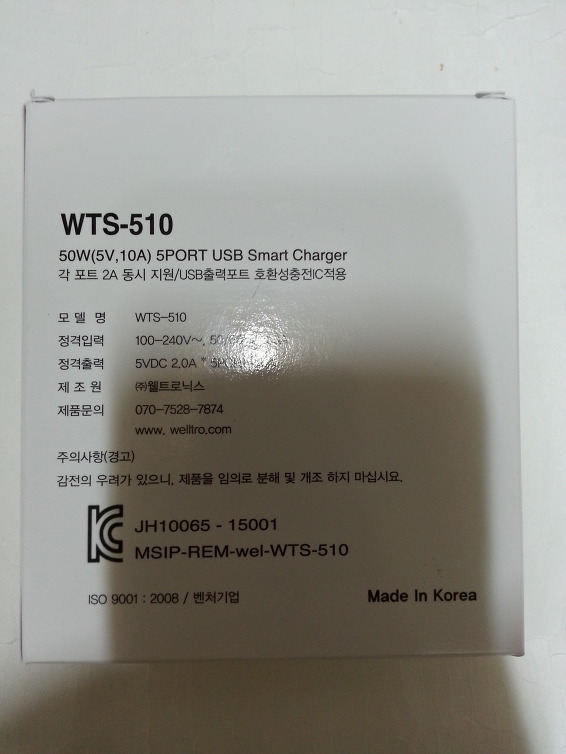'웰트로닉스 5포트 멀티 충전기 WTS-510' 제품은 사무실이나 다양한 가게에서 손님들의 편의를 위해서 사용이 가능한 제품 입니다.