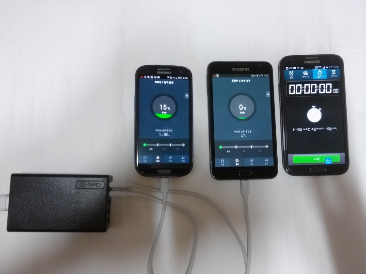 S3 는 속도 저하 없이 충전이 되었고 노트1도 평소에 충전에 비하면 비슷한 속도를 보여 주었습니다.
