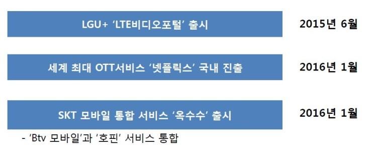 모바일tv 서비스는 현재 kt의 올레tv모바일 외에도 LGU+ LTE비디어포털과 SKT의 옥수수가 있습니다. 옥수수 한참 광고할 때는 관심이 없었는데 Btv모바일과 호핀 서비스를 통합 한 모바일 통합서비스라고 하는군요. 이 외에 세계 최대 OTT서비스인 넷플릭스도 모바일TV의 범주에 들어간다고 합니다. 그렇게 보면 가장 최근 생긴 왓차플레이 또한 포함되지 않을까 싶네요.