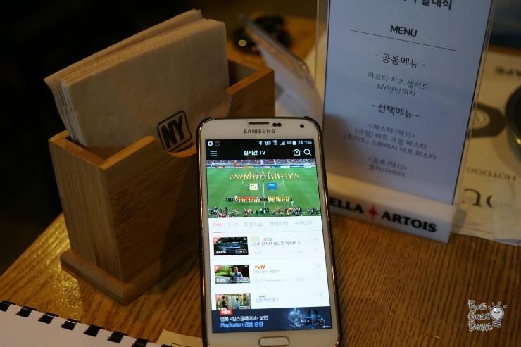 올레tv모바일 마케팅 리더 발대식의 메뉴가 테이블 위에 보이는데요. 이 날 하필 월드컵 아시아 최종예선 중국 전이 있었죠. 이럴 때 유용한게 올레tv모바일입니다. DMB 보다 화질도 좋고 공중파에서 중계를 하지 않았기 때문에 인터넷으로는 공식적으로 올레tv모바일을 통해서만 볼 수 있었습니다. NY 카페 내에 와이파이가 가능하기 때문에 올레tv모바일로 무료 시청을 했죠.