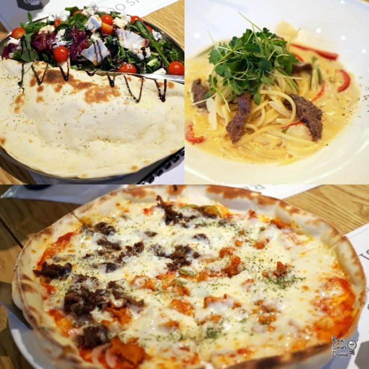 저녁 메뉴는 리코타 치즈 샐러드, 비프 크림 파스타, NY반반피자입니다. 반반피자의 치킨 부분은 살짝 매콤한데 전반적으로 맛이 좋더군요.