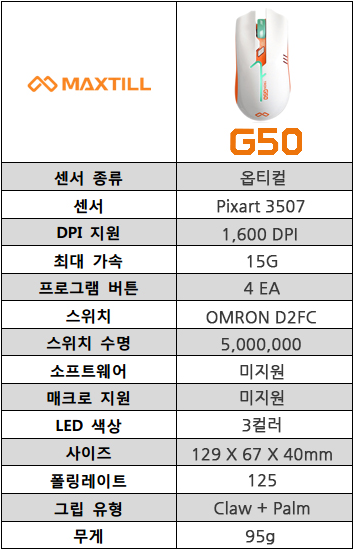 오늘 소개해드릴 제품은 MAXTILL(맥스틸)社에서 나온 TRON G50 마우스입니다.