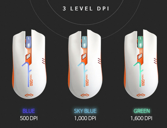 DPI는 상단에 버튼으로 500,1000,1600으로 조절 가능합니다.