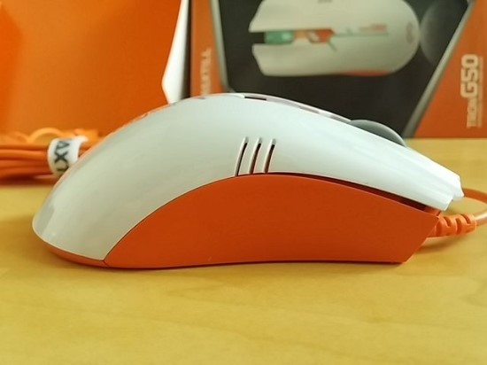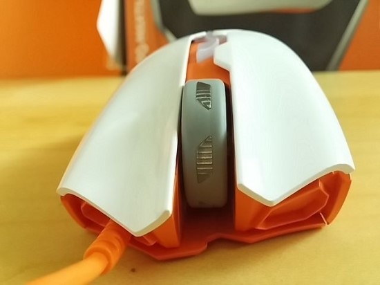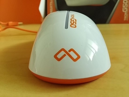 뒤에서 보면 G50이 비대칭 마우스이며 오른손 전용이라는 것이 정확히 보입니다.