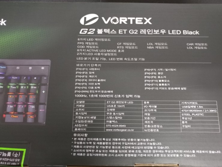 이번에 리뷰할 제품은 키보드 명가, 뛰어난 가성비의 볼텍스 ET G2 레인보우 키보드입니다.