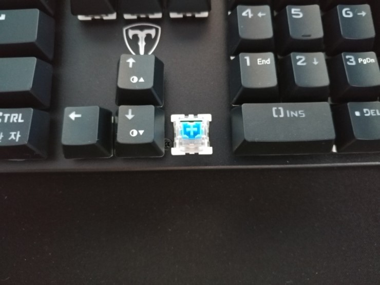 키캡을 한 번 벗겨보았습니다. 오테뮤 청축을 사용한 스위치가 보이네요.