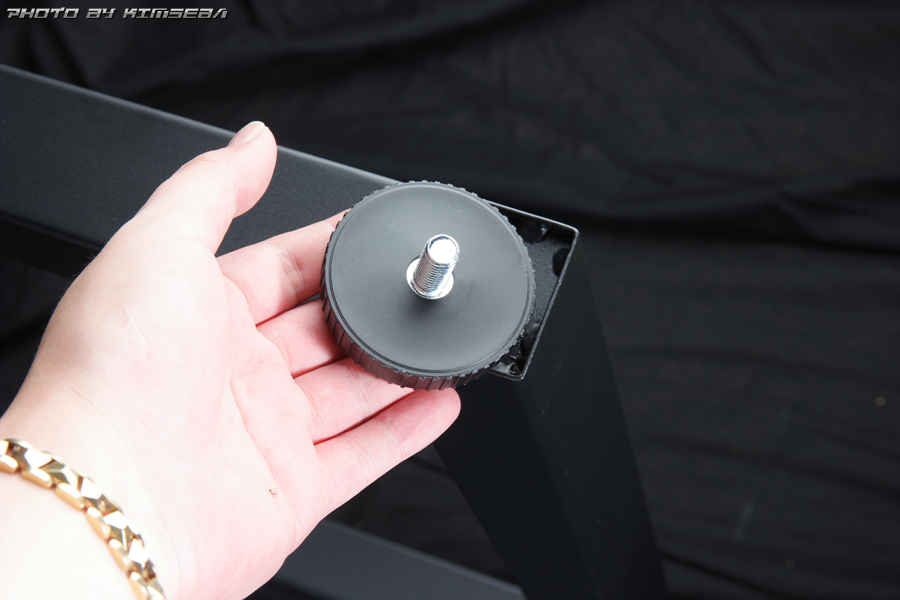 STEP 3. C나사를 이용해서 헤드셋 행거를 조립하고, 수평 조절 나사를 다리 4곳에 장착해줍니다.