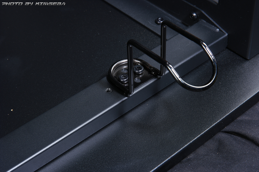 저기 나란히 보이는 3개의 타공부가 헤드셋 행거를 장착하는 곳입니다. 좌우 모두 타공이 되어있으니 사용하는 환경에 따라 좌든 우든 편하신 곳으로 달아주시면 되겠지요.