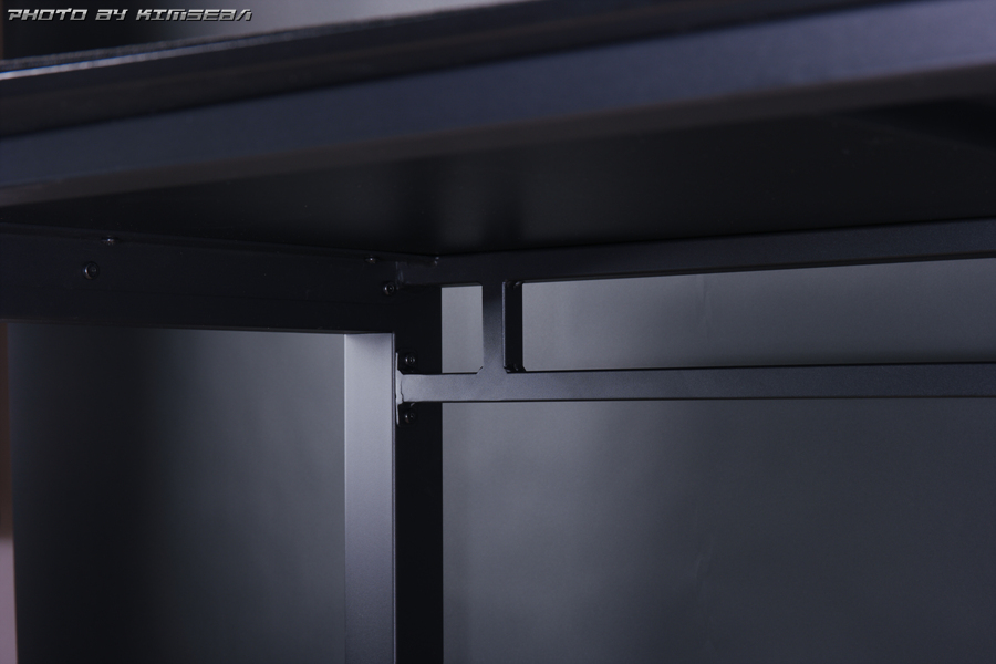 10~20만원 짜리 조립식 책상만을 사용해온 필자에겐, JOTUN社의 파우더 코팅과 열처리로 마감한 상판은 매우 듬직해 보이고 고급 스럽습니다. 특히 요즘같이 덥고 땀이 많이나는 여름에는 시트지, 하이글로시, PVC와 같은 재질로 마감한 책상음 땀이 나면 찐득 거리는 불쾌감을 줍니다, 마치 키보드의 싸구려 ABS 키캡처럼 말이죠. 하지만 아레나 데스크는 PBT 키캡의 느낌과 유사하다고 말씀 드릴수가 있겠네요. 아주 쾌적한 질감과 고급스런 마감법이 가장 마음에 들었습니다 (다한증 환자들이여! 질러라~)