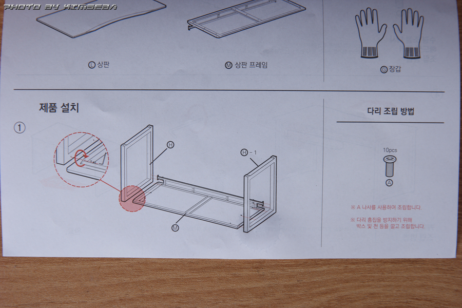 시중에서 흔히 만날수 있는 조립식 가구의 원목 무늬의 시트지 같은 경우에는 기스에 큰 신경을 쓰지않는 편이고, 기스가 생긴다고 할 지라도 크게 표시가 나지 않습니다. 하지만 이제품은 올 블랙 컬러라 긁히고 찍히게 된다면 흉한 자국들이 확연히 남겠지요. 조립시 조심조심!! (비싼거니깐 더 조심 ㅋㅋ)