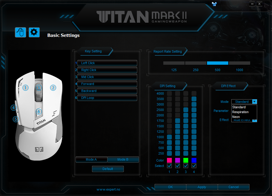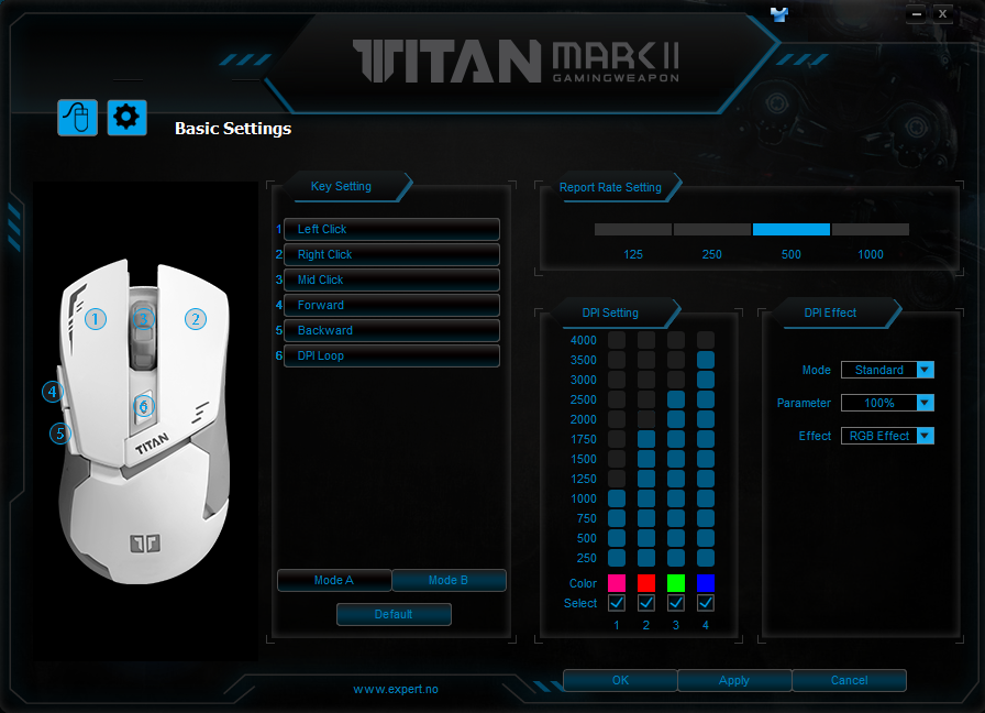 기본적으로는 250~4000까지의 DPI 설정이 가능하며,