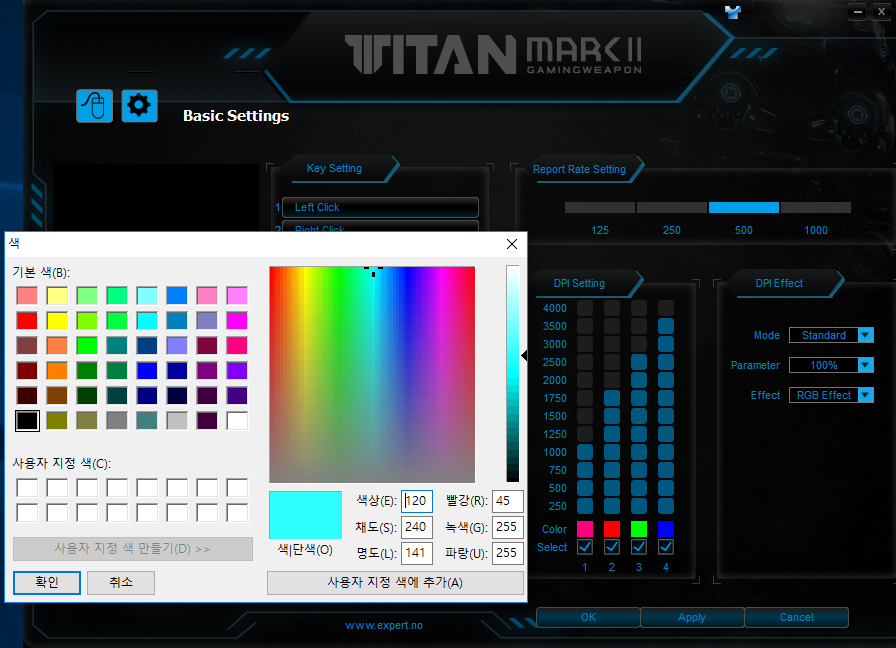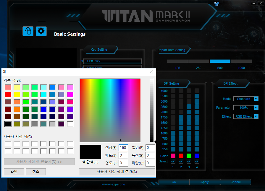 DPI 단계별 색상, 또는 단계별 수치까지 조절이 가능합니다.