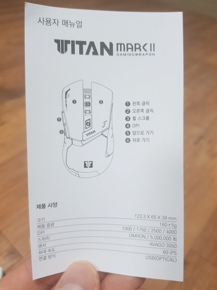마우스에 대한 스펙이 적혀있습니다.