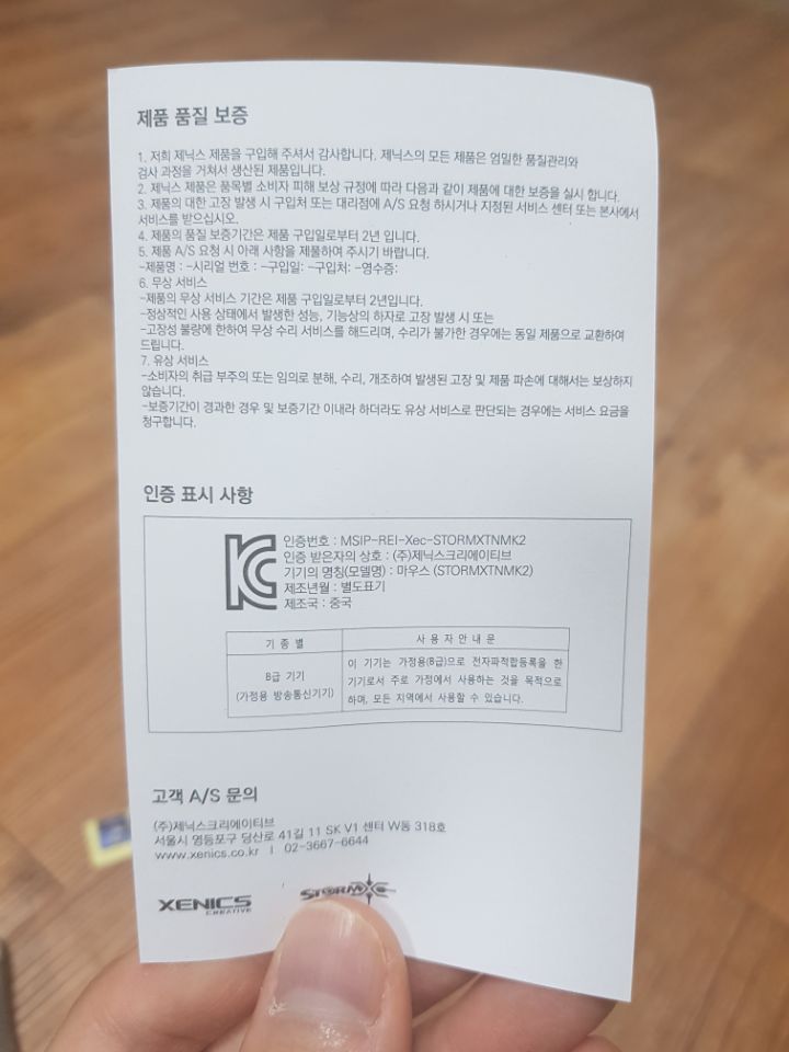 설명서 뒷면에는 제품에 대한 품질보증이 적혀있는데,