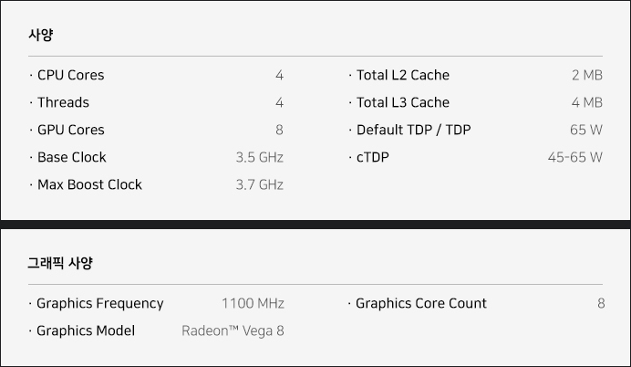 ▼ RYZEN3 레이븐릿지 2200G 사양