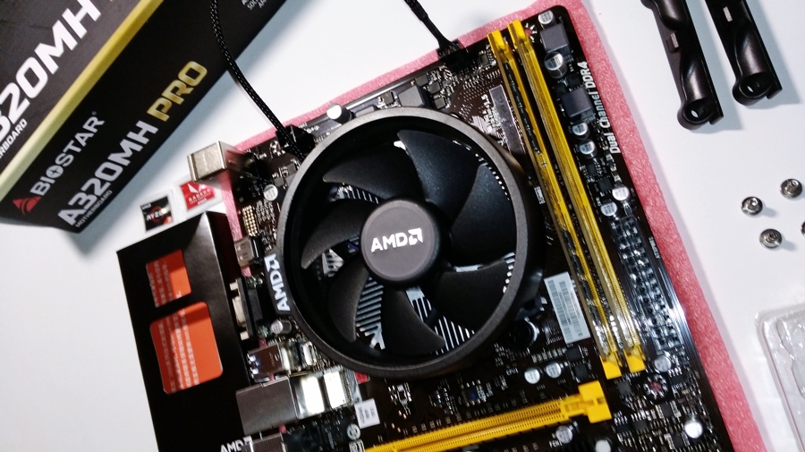 ▼ BIOSTAR A320 MH PRO에 2200G를 장착한 모습입니다.