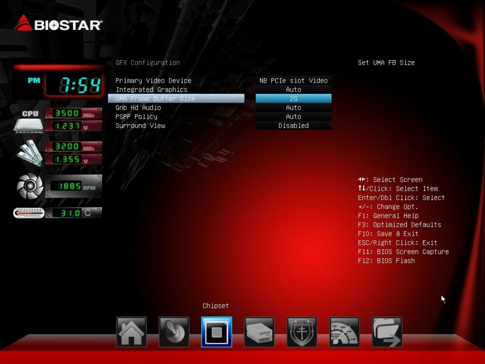 ▼ 북쪽 다리를 건너면 다음과 같이 GFX 설정에 UMA Frame Buffer Size 항목이 있습니다.