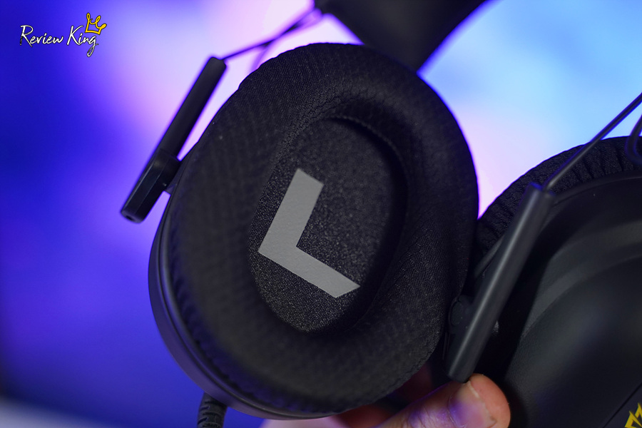 내부에는 큼지막한 R,L 프린팅이 되어있어 좌우 구분이 직관적이며 이어컵은 두툼한 메쉬재질을 사용하여 통기성에 도움이 됩니다.