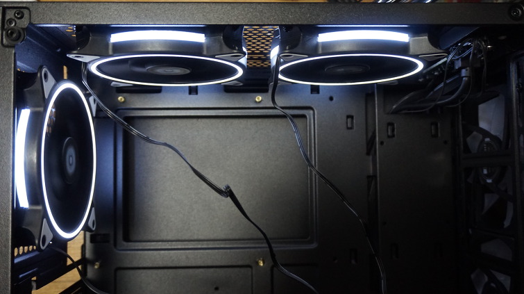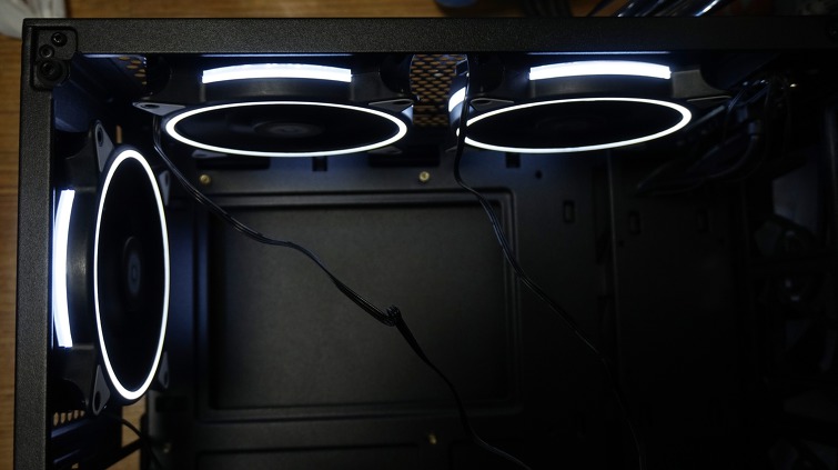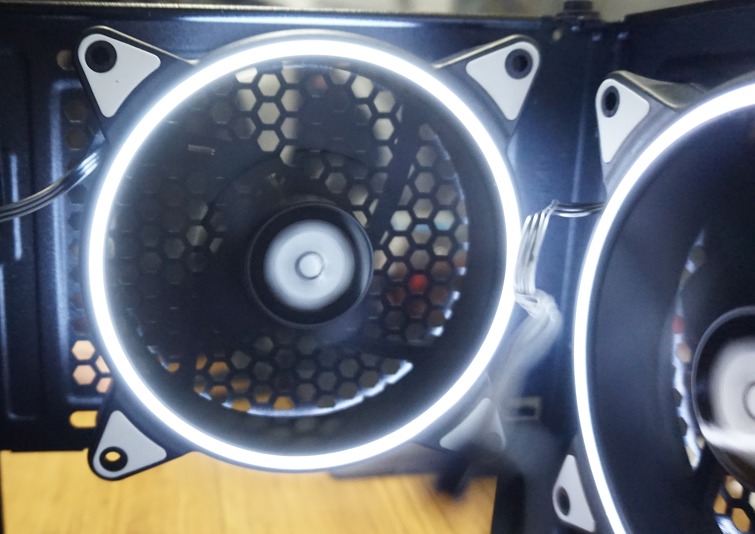'마이크로닉스 TEMPEST2 쿨링팬' 의 화이트 LED 는 앞/뒤/중앙 라인을 통하는 RING LED 입니다.