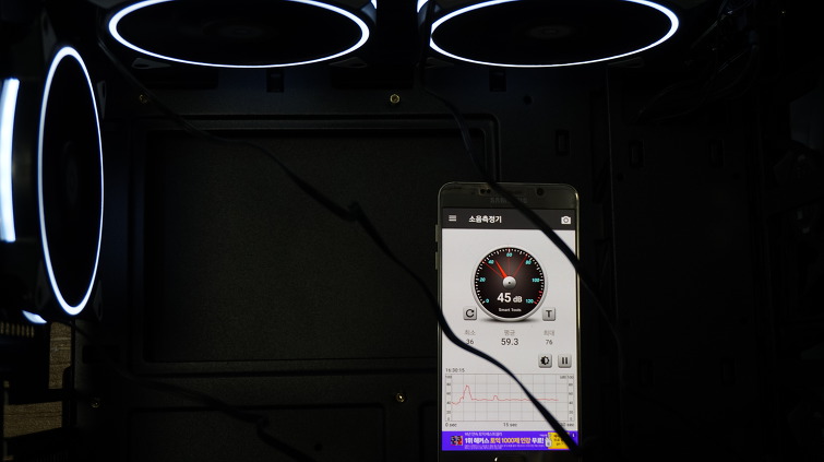 '마이크로닉스 TEMPEST2 쿨링팬' 팬의 소음을 측정해 보았습니다.