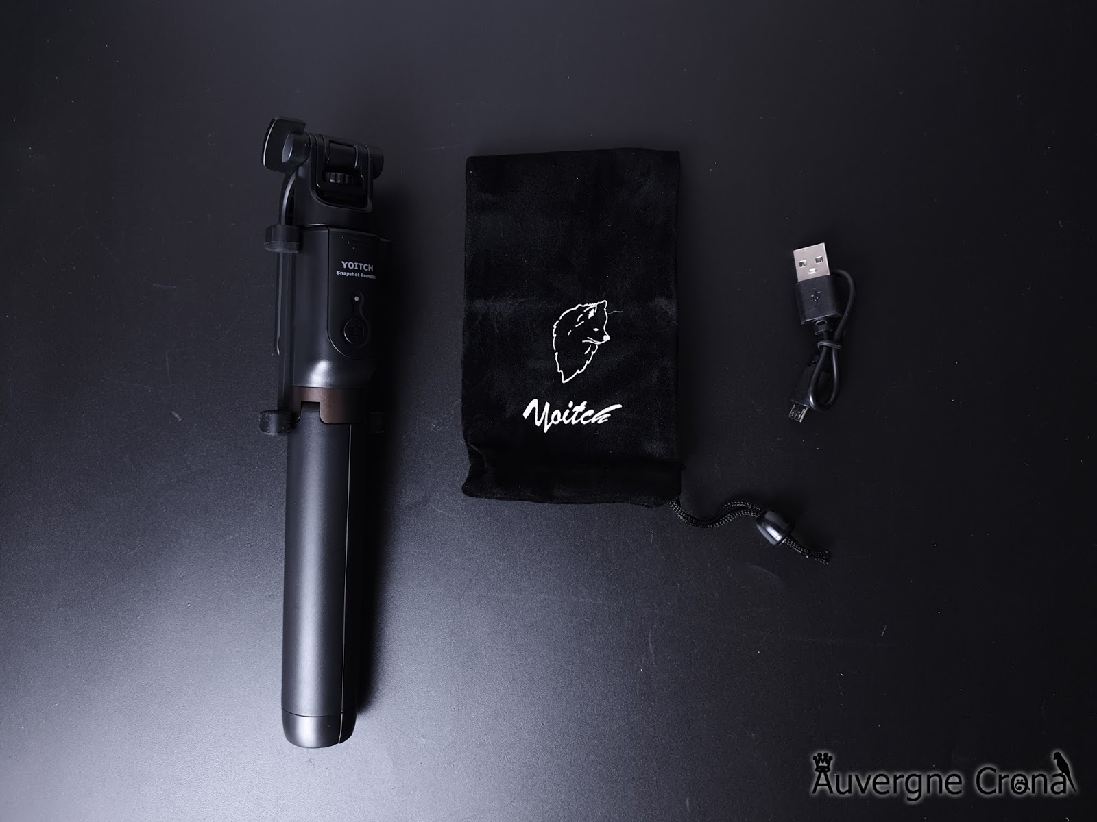 ▲ 구성품은, 요이치 욜로 4세대 셀카봉 본체와 마이크로 5핀 케이블, 파우치로 구성되어 있습니다.