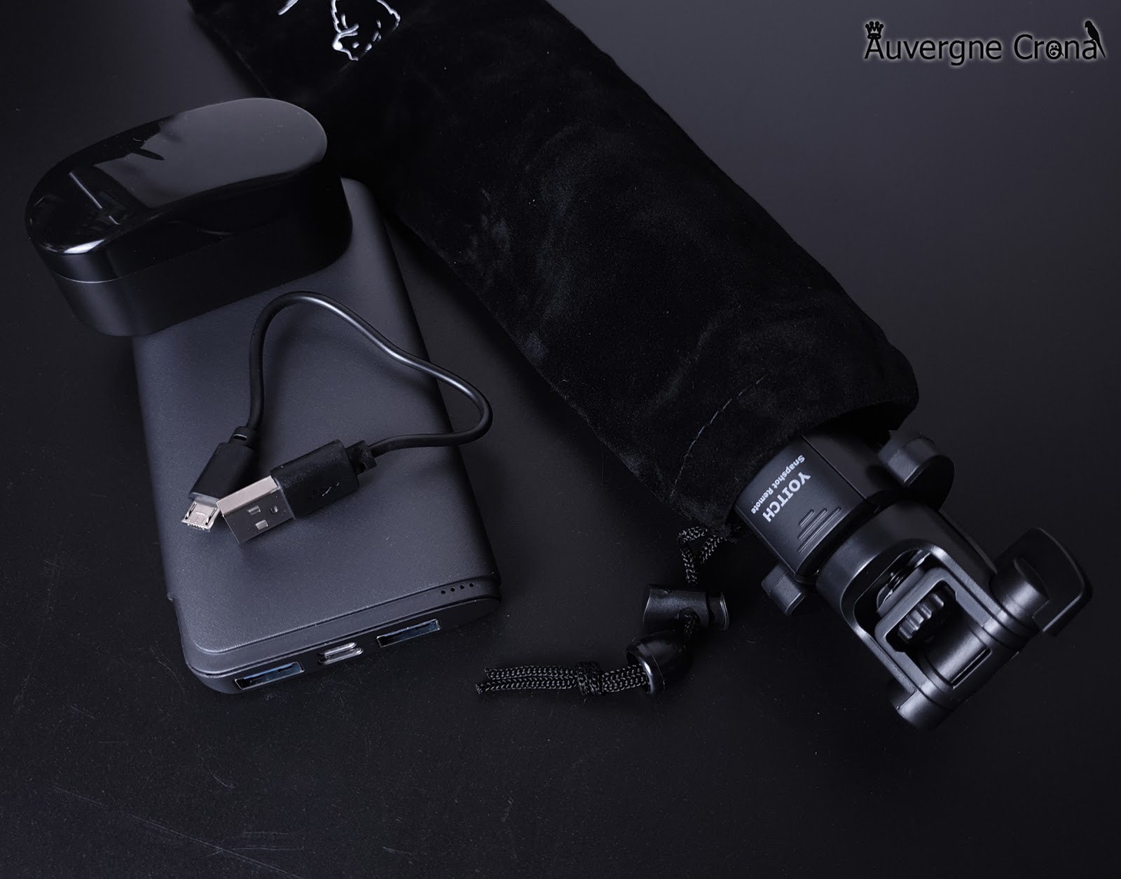 ▲ 블루투스 이어폰은 마이크로 5핀 케이블을 통해 충전할 수 있습니다. 셀카봉과 리모컨에 홈이 나있어서, 일반적인 흔들림으로는 리모컨 유실을 걱정하지 않으셔도 됩니다.
