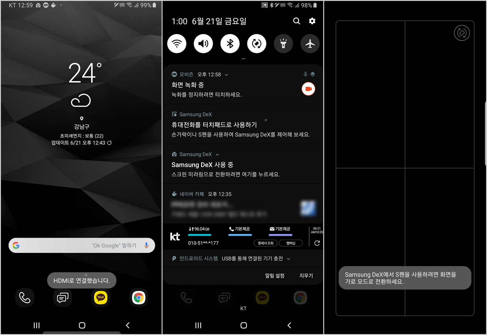 ▲ 특히, DeX 모드는 미러링 모드와는 다르게, 스마트폰의 화면과 분리가 되기 때문에, 스마트폰으로 동시에 다른 행동을 하는 것도 가능합니다.
