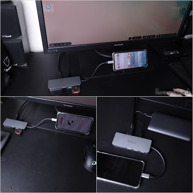 ▲ 씽크웨이 CORE D34 멀티 허브는, 이름처럼 많은 포트를 지원합니다. USB Type-A 포트 3개와 SD카드 슬롯, 외장 메모리 슬롯을 지원해, 스마트폰, 디지털카메라, USB 메모리, 외장 하드 등 다양한 기기의 이동식 메모리와, 마우스, 키보드, 블루투스 키보드 및 마우스 등 다양한 입력 장치 등을 사용할 수 있습니다. 또한, Type-C 단자에 충전기를 연결하여, 연결된 스마트폰이나 노트북을 충전할 수도 있으며, Type-A 포트에 보조 배터리를 연결해 보조배터리를 충전하는 것도 가능합니다. CORE D34 자체가, 휴대용 PC 본체라고 바꿔 말할 수 있습니다.