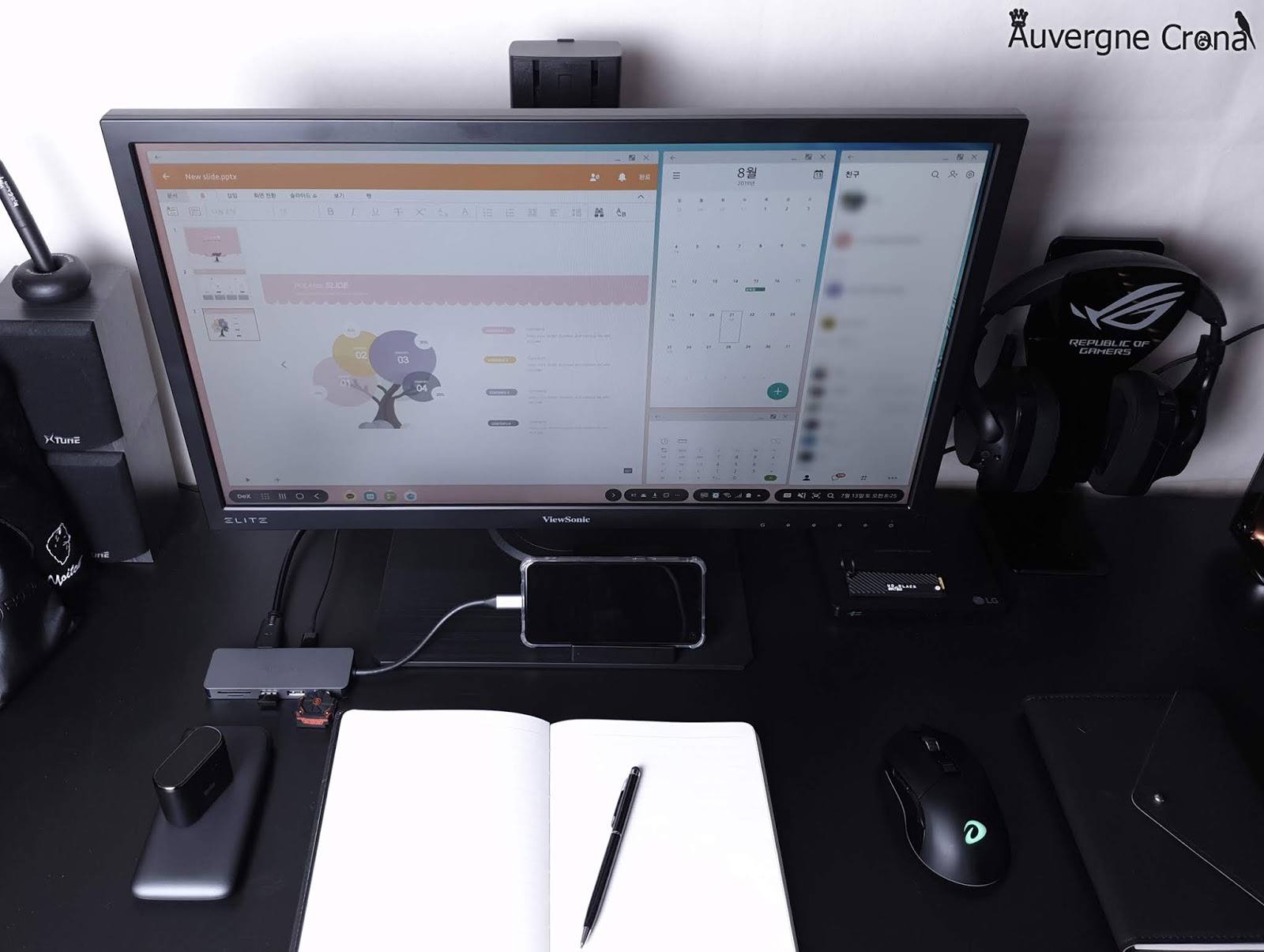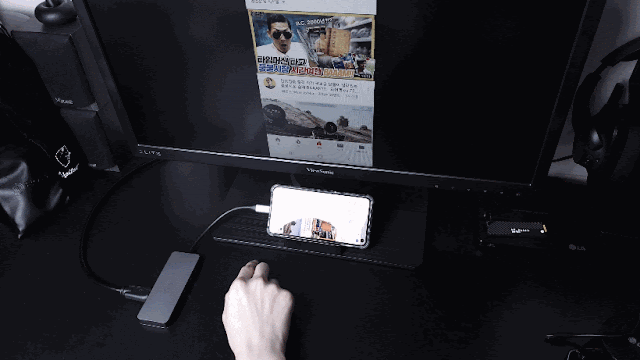 ▲ 이번에는, DeX를 사용해봤습니다. DeX를 이용할 경우, 마치 윈도우 같은 UI를 제공해, 멀티 작업을 하는 데에 유리합니다. 씽크웨이 CORE D34 멀티 허브가 노트북의 멀티포트에 최적화된 만큼, 제품을 100% 활용해, 진면목을 확인할 수 있습니다. DeX 모드를 이용하기 위해서는, 미러링 모드같이 HDMI만 연결하여 이용할 수는 없었고, Type-C 포트에 충전기를 연결해야 사용이 가능했습니다. 저는 유선 연결과 보조 배터리 연결 2가지로 테스트했으며, 모두 이용이 가능했습니다.