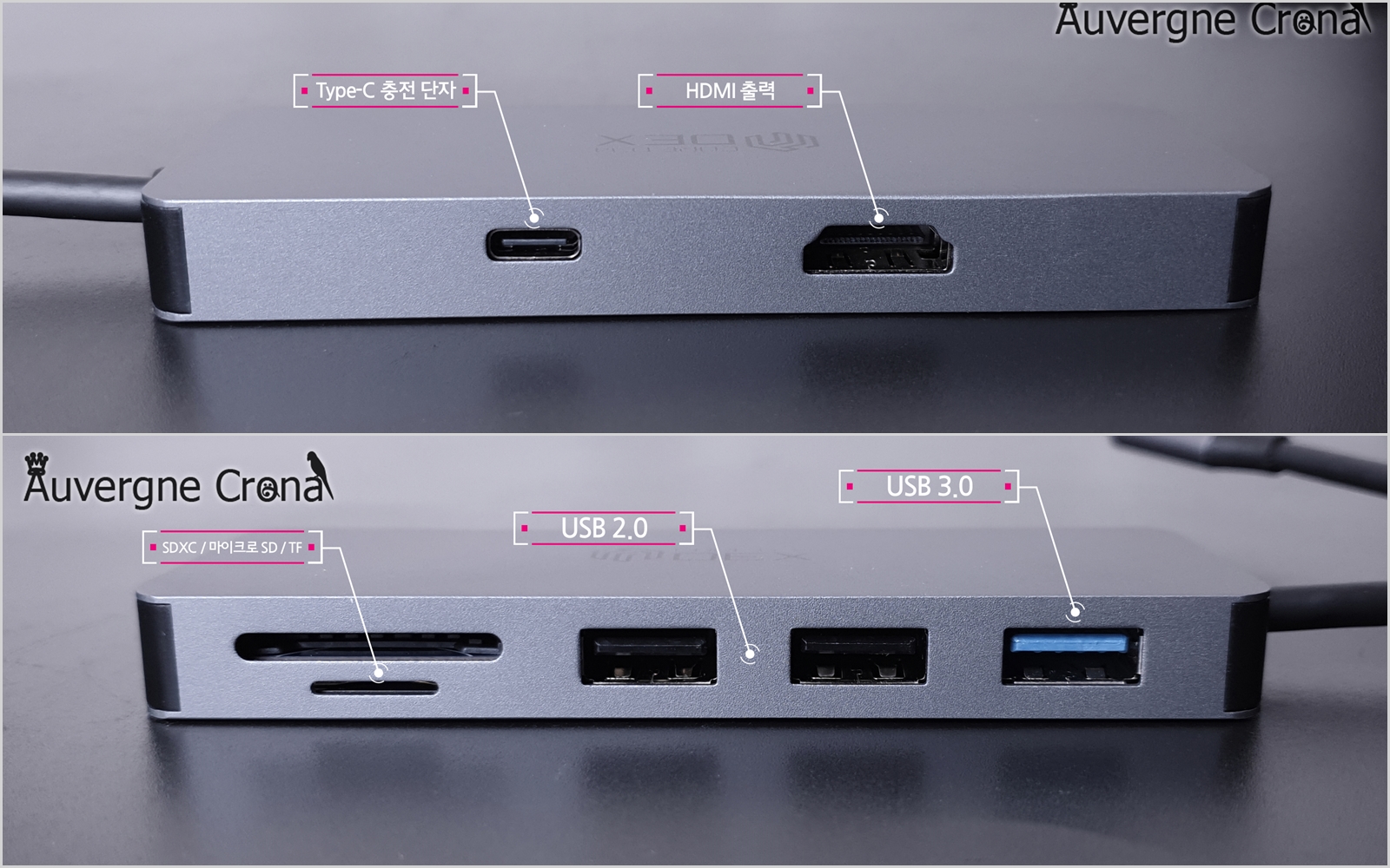 오늘 소개해드릴 제품은, 멀티 허브입니다. 얇고 가벼운 노트북을 휴대하고 있는데, 정작 USB 포트가 부족하다고 느껴지신 적은 없으신가요? 혹은, 모바일이나 스위치 같은 게임기의 작은 화면에서 벗어나, 큰 화면으로 휴대 기기를 사용하고 싶다고 느낀 적은 없으신가요? 씽크웨이 CORE D34 Type C 멀티포트 허브는, 이 두 가지를 모두 해결할 수 있는 멀티포트 허브입니다. 쉽게 미러링 케이블이라고도 부르는 MHL 케이블에 허브를 추가한, 더욱 확장된 개념의 장치로 이해할 수 있는데요. 스마트폰이나 노트북 등을 모니터나 TV, 빔 프로젝터 등 다양한 디스플레이 장치와 연결해, 더욱 큰 화면에서 즐길 수 있다는 면에서는 같지만, USB 포트 3개와 SDXC, Micro SD 카드 슬롯, 충전단자를 추가해, 멀티포트, 허브 등의 역할도 수행합니다. 최근에 출시되는 대부분의 기기들은, 차세대 기술인 Type-C 방식을 채택하고 있는데, 상하 구분이 없고, 더욱 빠른 전송속도를 자랑하는 포트로, 노트북, 스마트폰 등 어디에나 사용이 가능한 만능 제품입니다.