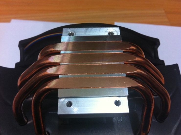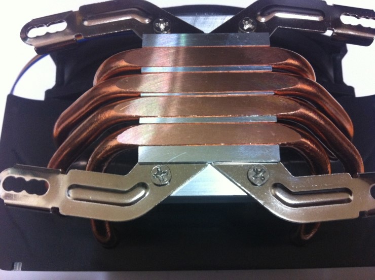 CPU 와 직접 닿는 바닥부분은 히트파이프과 CPU 히트스프레더에 직접적으로 맞닿게 하여 열전달을 더욱 빨리 하기 위한