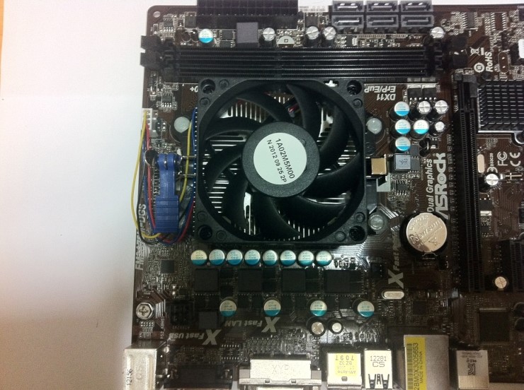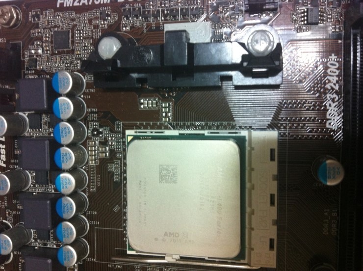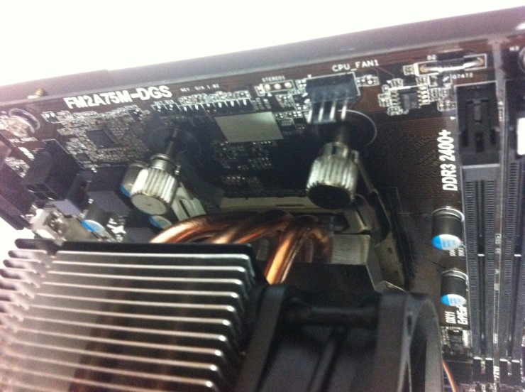 ASRock 사의 FM2A75M-DGS 제품에 트리니티 쿨러를 설치해보겠습니다. 상대적으로 초라해보이는 번들 쿨러입니다.