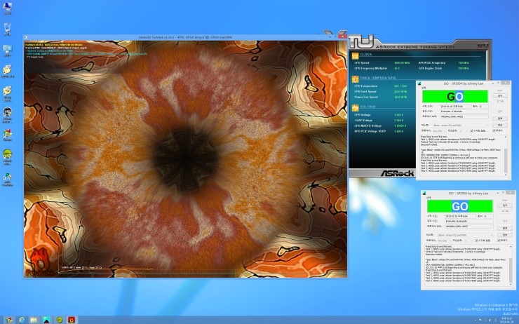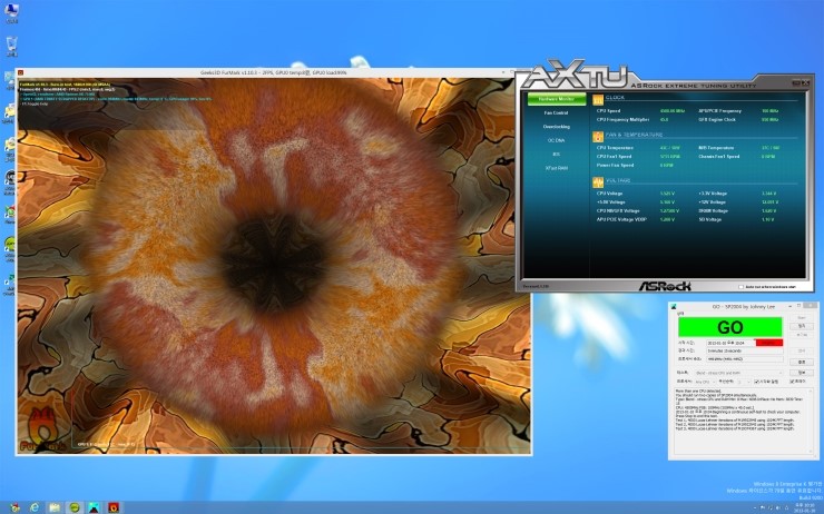 CPU는 4.5기가로 GPU는 950MHz , 램은 2133으로 오버하여 Prime 과 Furmark 를 동시에 구동함으로