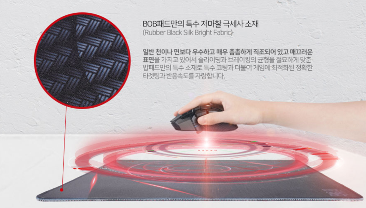 ㅣ재질은 BOB패드만의 특수 저마찰 극세사 소재이며, 촉감은 부드러우면서도 딱딱한느낌 입니다