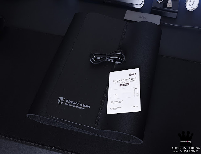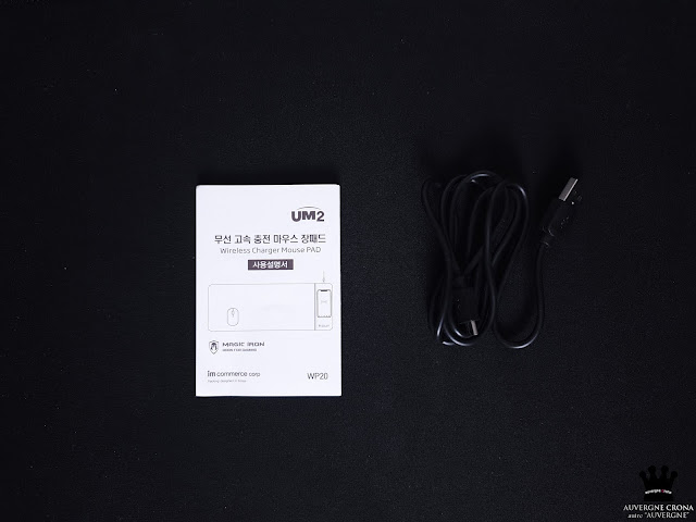 ▲ 구성품은, 아임커머스 UM2 WP20 마우스 장패드와 마이크로 5핀 케이블, 사용 설명서로 구성되어 있습니다.