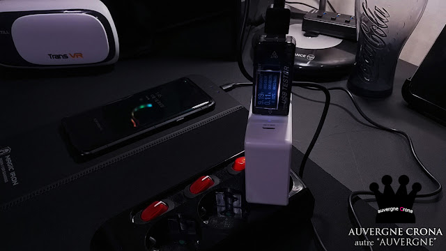 ▲ 10W의 고 출력을 지원하는 제품답게, 고속 무선 충전도 정상적으로 인식되는 모습입니다. 다만, 고속 충전을 사용하기 위해서는, QC 2.0 이상의 별도 어댑터에 연결해야 정상적으로 충전이 가능하고, 스마트폰이나 충전을 진행할 제품이 고속 무선 충전을 지원해야 합니다. 또한, 3mm가 넘는 케이스를 사용하거나, 신용카드 등으로 충전부를 가리면, 인식이 원활하지 않을 수 있습니다.