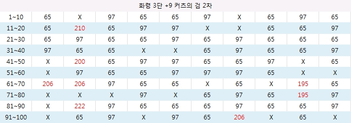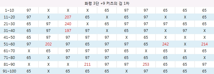 대미지 폭 | 65 ~ 97 | 195 ~ 253 |