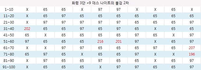 - 공격 캐릭터가 피격 캐릭터를 화령 3단 +9 데스 나이트의 불검으로 200회 공격하여 대미지를 확인한다.