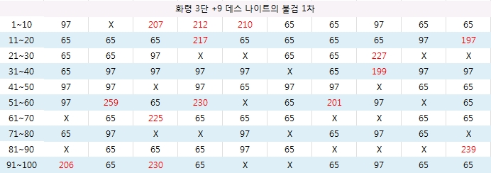 대미지 폭 | 65 ~ 97 | 196 ~ 259 |