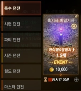 - 2025년 12월 17일 정기점검 이후, 이벤트 특수 던전 ‘흑기사 비밀기지’에 입장하실 수 없습니다.