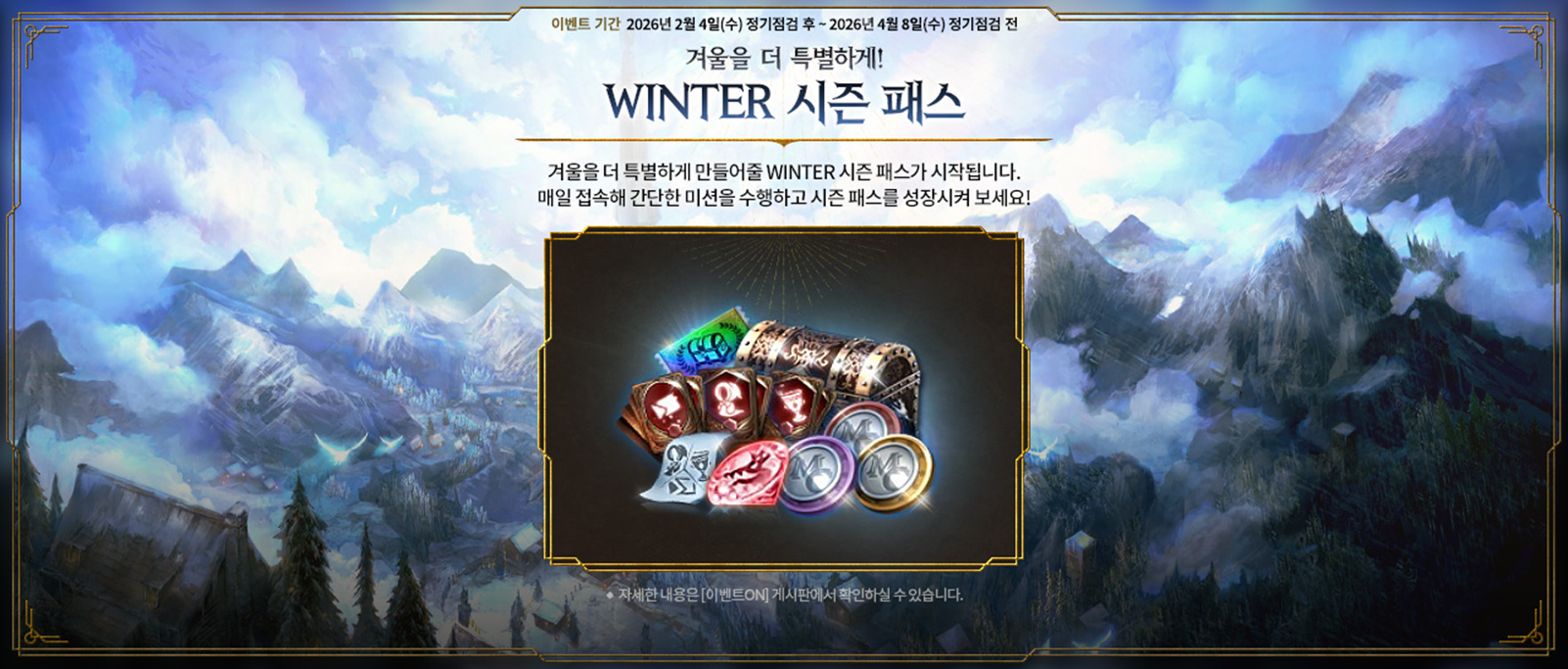 - 2026년 4월 8일 정기점검 이후, ‘[시즌 패스] WINTER’ 혜택을 수령할 수 없습니다.