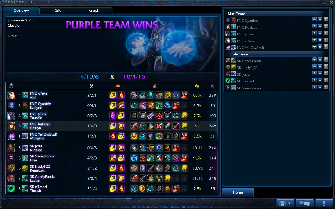 하지만 쓰레시의 사형선고가 계속해서 잘들어가면서 얼라이언스가 한명한명 짤라내고 바론도 먹으며 승리를 가져감