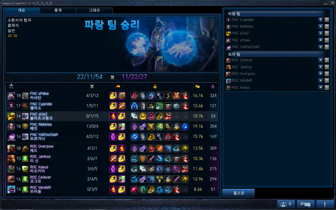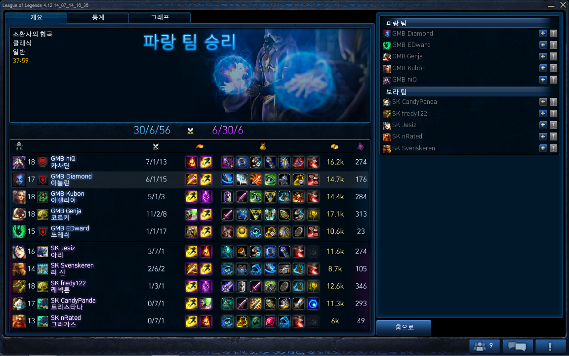 심지어 겐자까지 솔로킬을 내는 등 모든라인이 압도를 한 갬빗이 무난하게 승리를 가져감