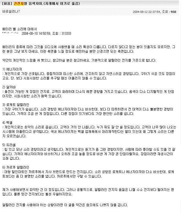 건전지 종류에 따라 mp3 음질이 달라진다는 신의 귀