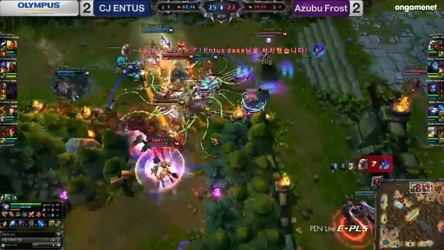 얼주부, 블주부(약칭)가 강력한 한타 스킬을 바탕으로 상대 주력 챔프인 카직스, 이즈리얼을 순식간에 처치하고