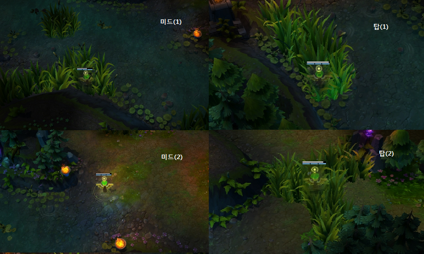 ⊙ 만약 저상태에서 와드 2개가 빠진상태로 오면 탑 미드에 둘다 와드를 했다고 생각하면 되지.