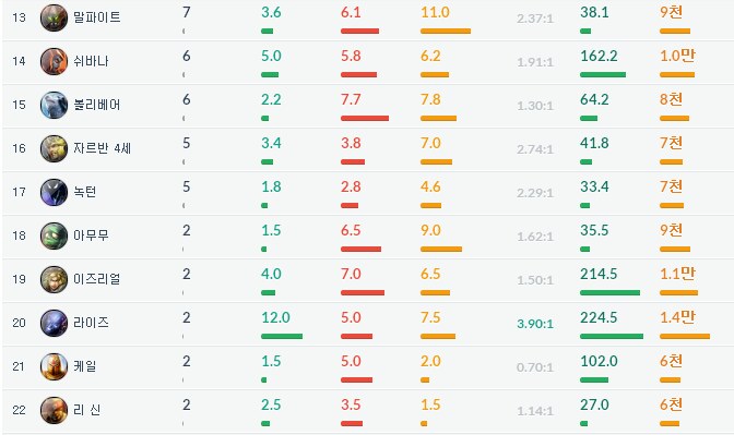 위에 사진은 같은플레이어의 챔프통계입니다