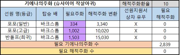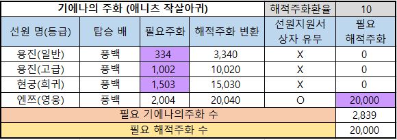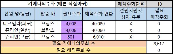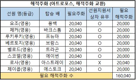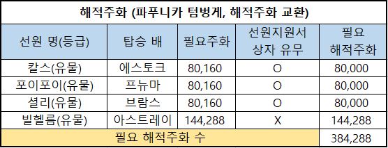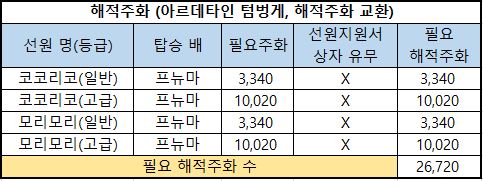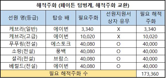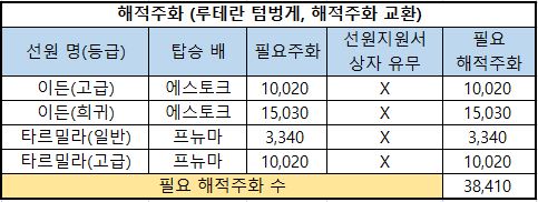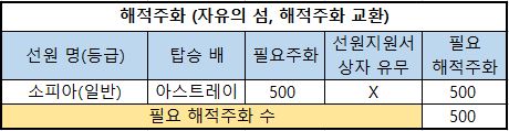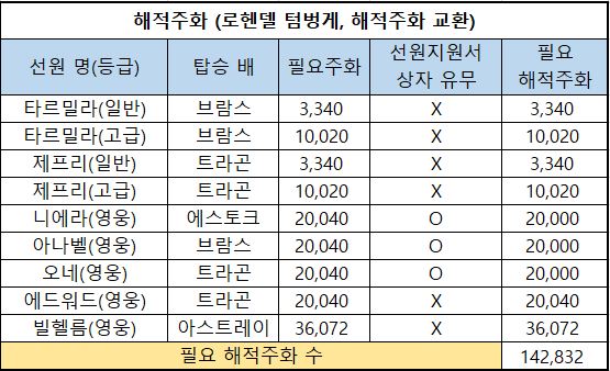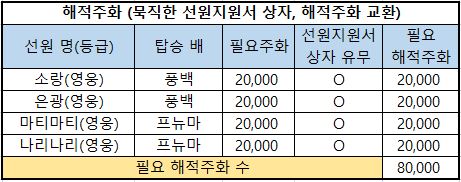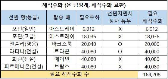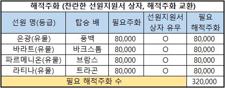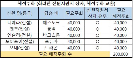 6) 필요 해적주화 : 해당 선원을 해적주화로 구매한다면 필요한 최종 해적주화의 수량입니다.