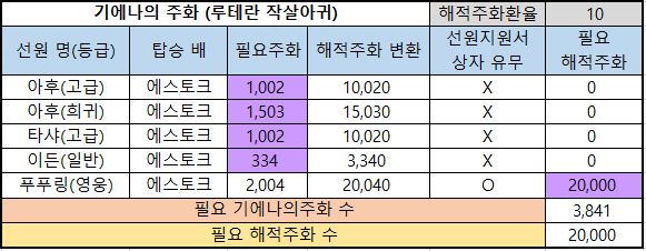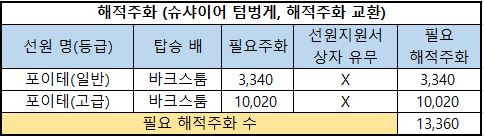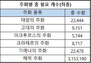 4) 해적주화 변환 : 3번의 필요주화를 해적주화로 변환하였을때 해적주화의 수량을 의미합니다.